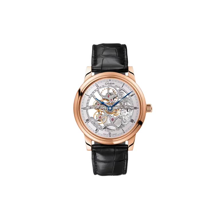 Suggested retail price exclusive of tax. The suggested retail price can be modified at any time without notice.Glashutte Senator Manual Winding Skeletonized Edition Watch