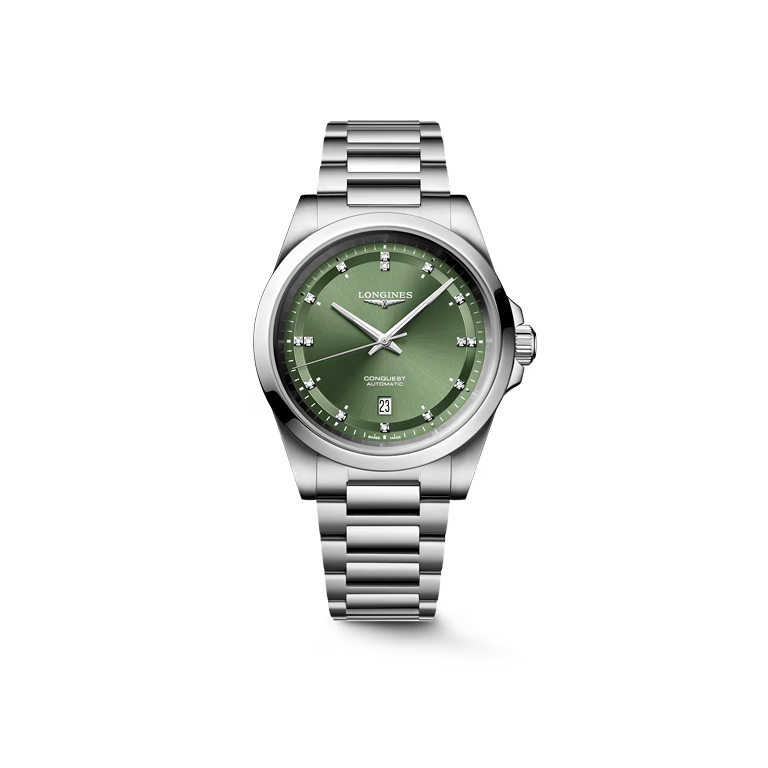 Commanding attention with its rich sunray green dial, the Longines Conquest L3.830.4.07.6 reimagines the modern sports watch as a statement of confidence, craftsmanship, and unexpected elegance. A rare blend of athletic performance and discreet luxury, this timepiece proves that precision and panache can coexist—on land, in water, and everywhere in between.