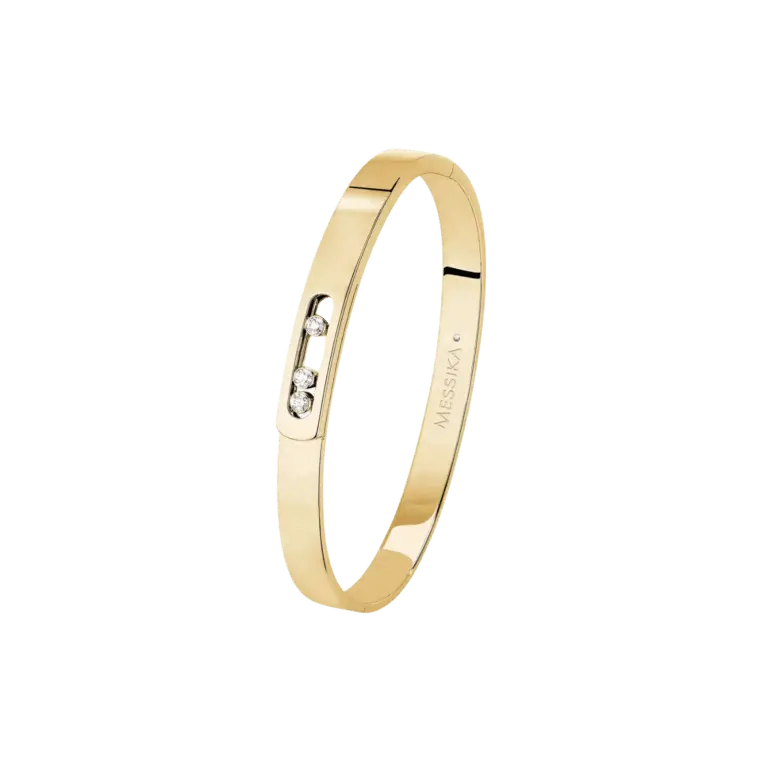 Contact Us Call UsBoasting sleek, elegant lines, the Move Noa bangle bracelet has been reinvited in a diamond and chiseled yellow gold version. The interplay of textures and depth of the gold adds a new intensity to this iconic luxury piece by the Maison. Timeless diamond jewelry where the movement of the diamonds perfectly resonates with the nuances of the textured gold. Each chisel detail is done by hand, reflecting the precision of the jeweler’s touch. The distinctive unisex Move Noa diamond bracelet is worn close to the skin, and can be styled on its own or stacked with other Messika bangles.