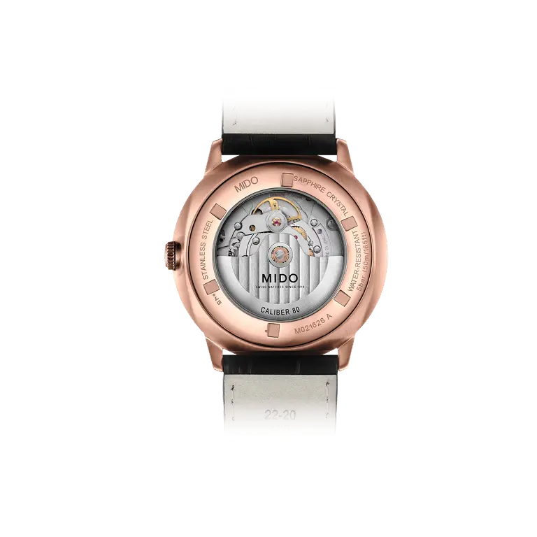 The MIDO Caliber 80 represents a major advance in self-winding movements. Thanks to its new-generation technology, it offers up to 80 hours of power reserve – twice as much as a conventional movement.