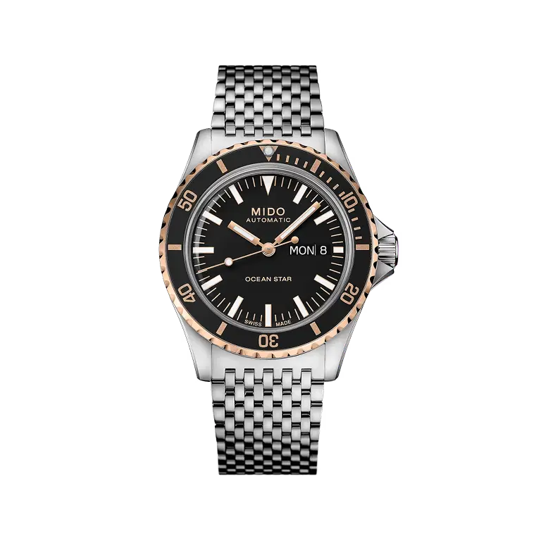 MIDO pays tribute to the Ocean Star collection. In subtle reference to the past, the Ocean Star Tribute Swiss watch reinterprets the aesthetic codes of the diving models from the 1960s. It is fitted with the Caliber 80 automatic movement with up to 80 hours of power reserve, is water-resistant up to a pressure of 20 bar (200 m/656 ft) and features a unique strap offering maximum comfort.