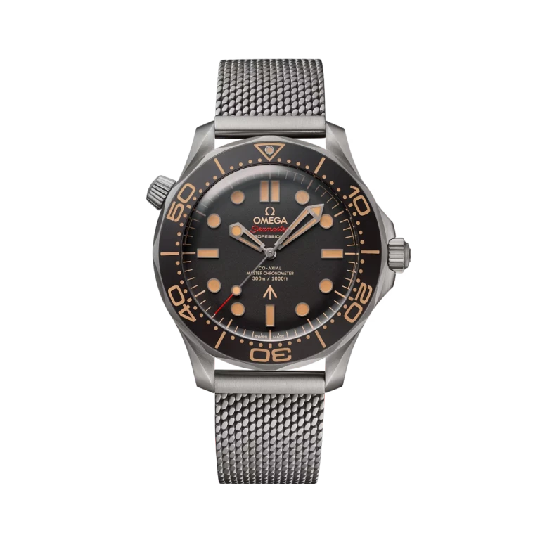 Contact Us Call UsIdentical to 007’s watch in No Time To Die, this 42mm Seamaster, in strong yet lightweight Grade 2 Titanium, sports a brown tropical aluminum bezel ring and dial.